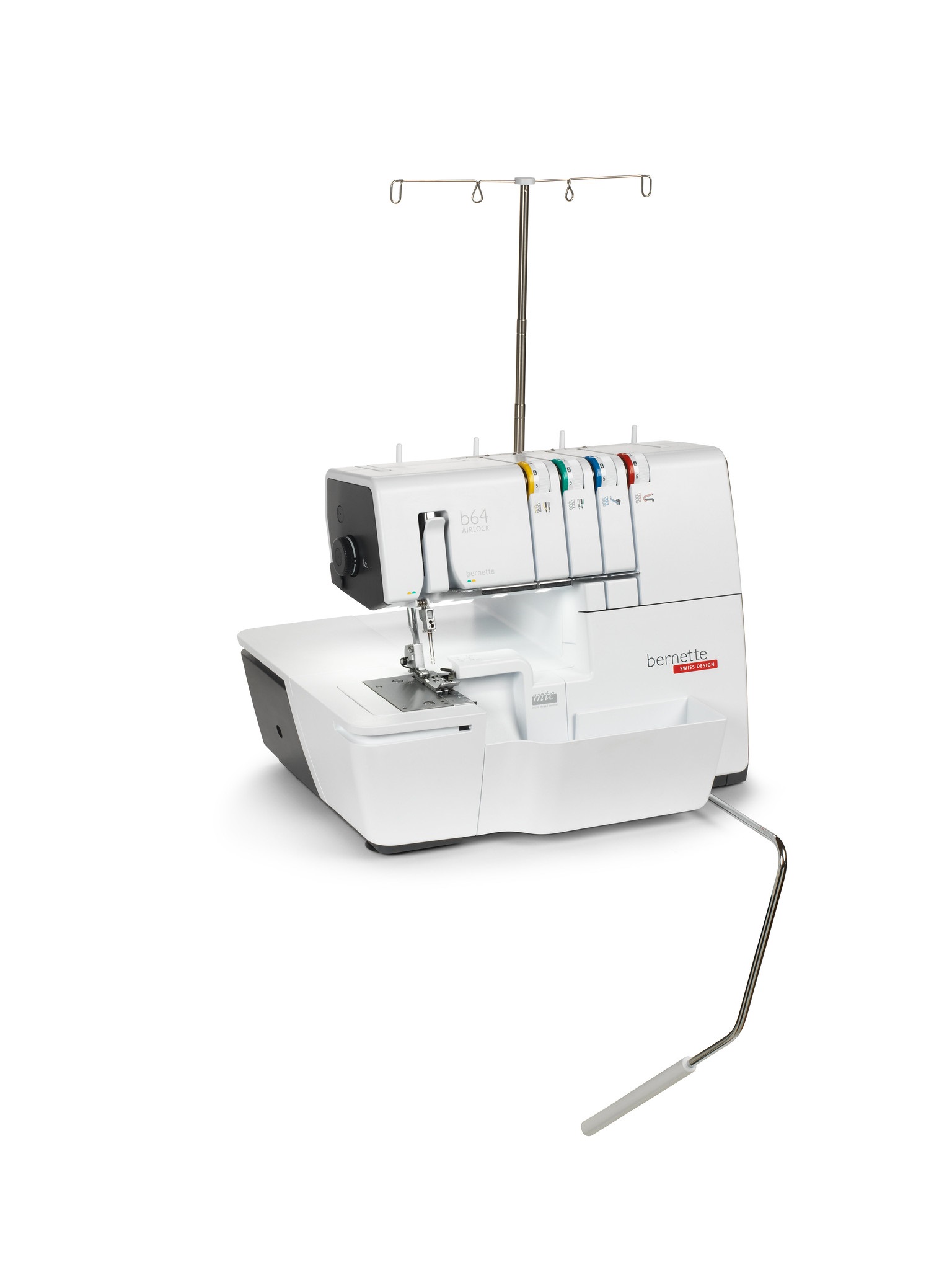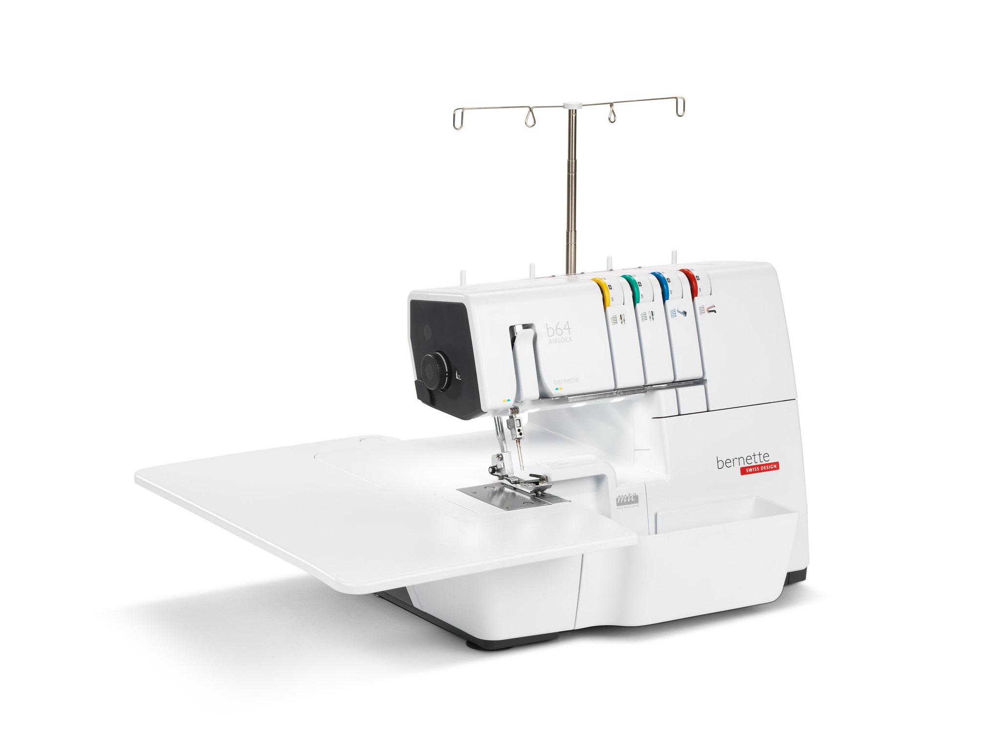 The overlocker with an air threader to automatically thread the loopers. It‘s never been so easy to get started. The b64 AIRLOCK has even more to offer: the freearm makes it easy to sew sleeves and cuffs. You will love the large work surface to the right of the needle and the slide-on table. 5 LEDs ensure the working area is brightly lit. The presser foot can be lowered and temporarily raised using the bernette Free Hand System, so that your hands remain free to guide the fabric. With 16 different stitches to choose from and a sewing speed of up to 1300 stitches per minute, you will finish your project in no time!