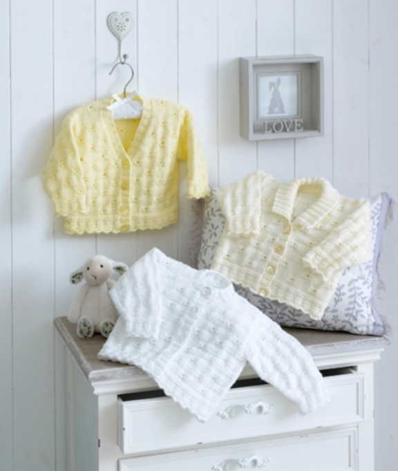 Three cardigans that feature a simple eylet pattern ans pretty rib border